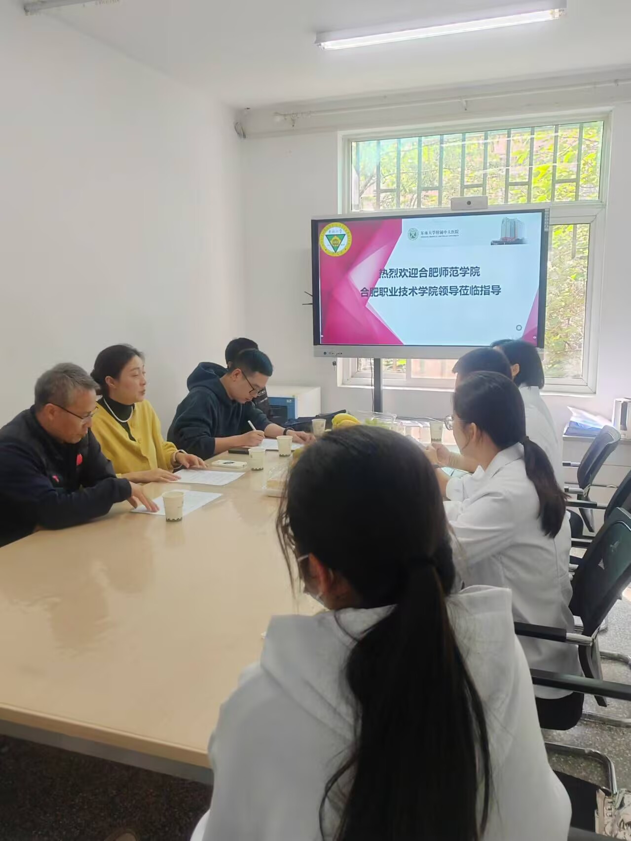 10月29日,我校永利集团304am登录副院长梁丹丹、康复与老服教研室主任薛宝亮与合肥师范学院体育科学学院运动康复系主任王强、骨干教师王波共同深入东南大学附属中大医院检查联合培养专升本运动康复专业学生毕业实习情况。