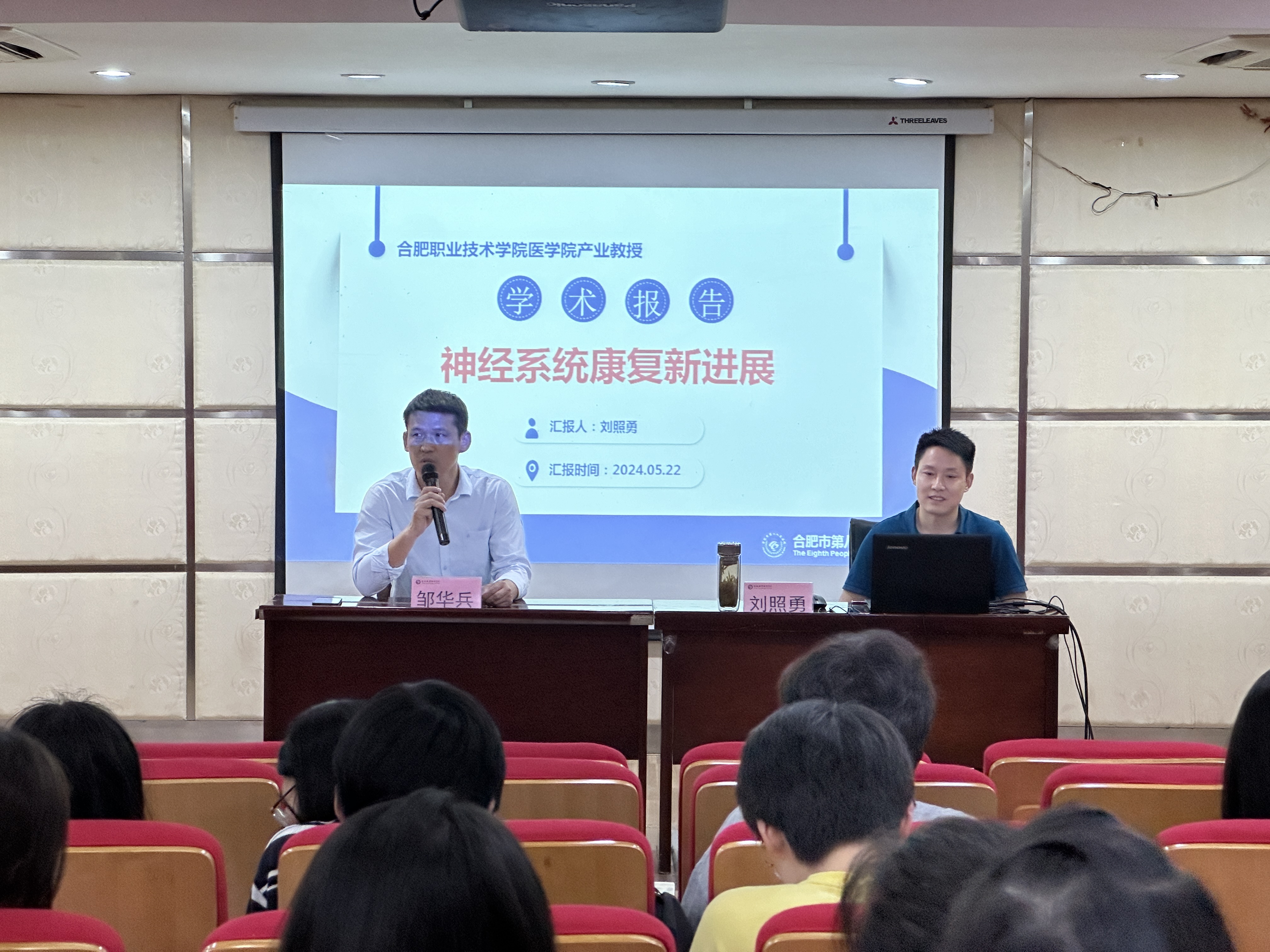 5月22日下午,安徽省职业院校产业教授、永利集团304am登录产业教授、合肥市第八人民医院运动康复科主任刘照勇受邀为我院学生讲授了一场关于神经系统疾病临床康复最新治疗进展的学术讲座。讲座由永利集团304am登录副书记邹华兵(主持工作)主持,2022级康复治疗技术专业全体学生及康复与老服教研室全体教师参加。