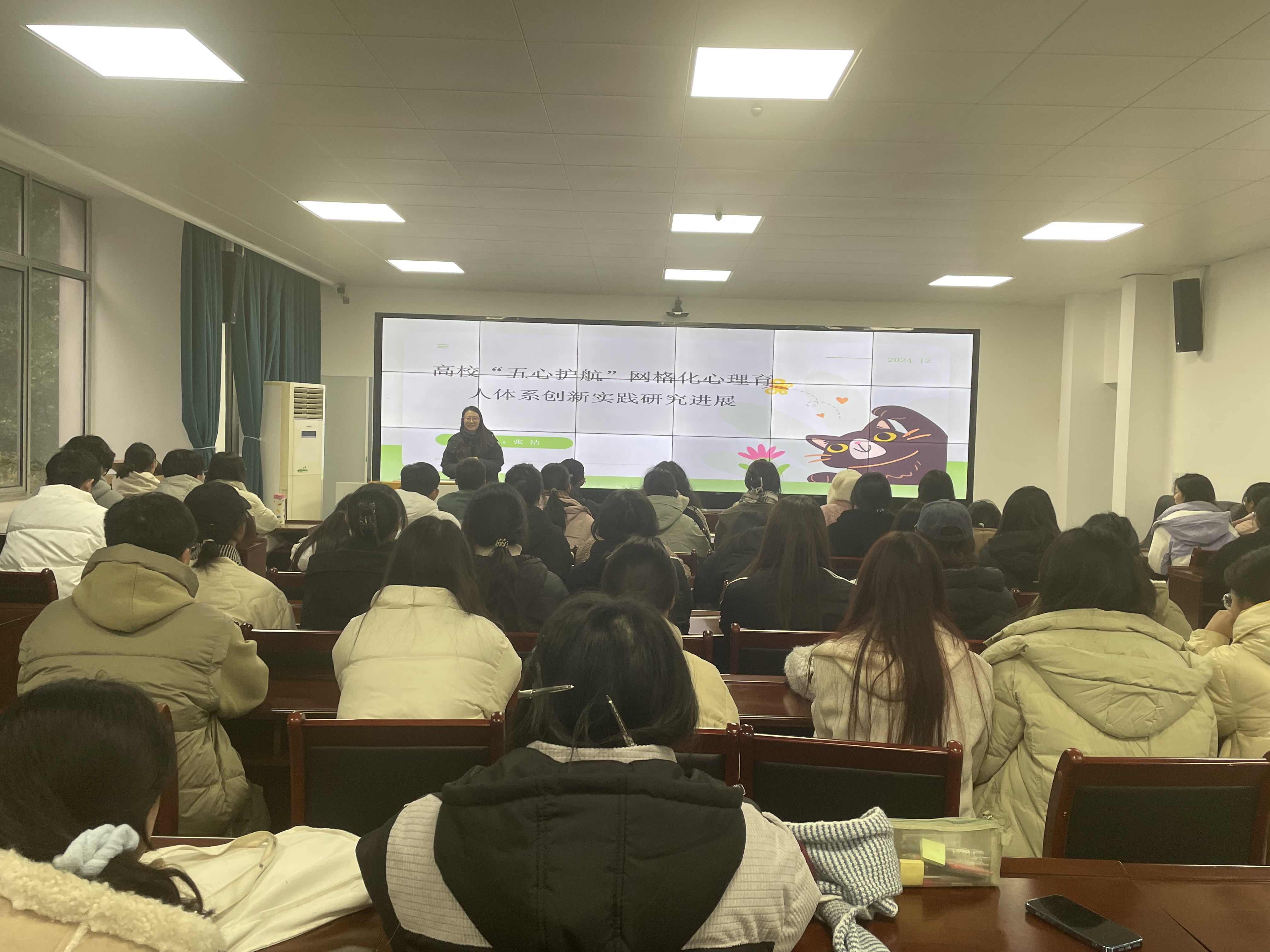 讲座报告人张洁老师为永利集团304am登录专职辅导员,《高校“五心护航”网格化心理育人体系创新实践研究》科研项目负责人。她从心理健康教育领域前沿理论动态、研究热点以及发展方向为切入点,介绍了本科研项目研究进展和成果。包括“三全育人”视域下高校心理健康教育现状调查与分析成果,高校“五心护航”网格化心理育人体系可行性调查与分析成果,心理育人视角下高校心理情景剧的创新模式研究与应用成果以及“五心护航”网格化心理育人创新实践案例分享。