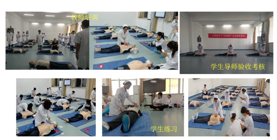 多元化导师架构,梯队式推广普及方式。本次急救知识推广普及导师队伍由永利集团304am登录专业教师团队、医院临床一线专家和学生小导师组成。永利集团304am登录近年来通过以赛促教、以赛促学,加强了教师专业团队技术水平,完成了梯队培养第一梯队的培训导师建设,依托专业社团“天使护理协会”近年来关于梯队式培养成功经验,培养了大量社团骨干,极大丰富了第二和第三梯队的培训导师队伍。通过培训、筛选优质培训师资和梯队顶层优秀学生,搭建了包含20余名专业教师和临床一线专家队伍,40余名顶层优秀学生小导师队伍。