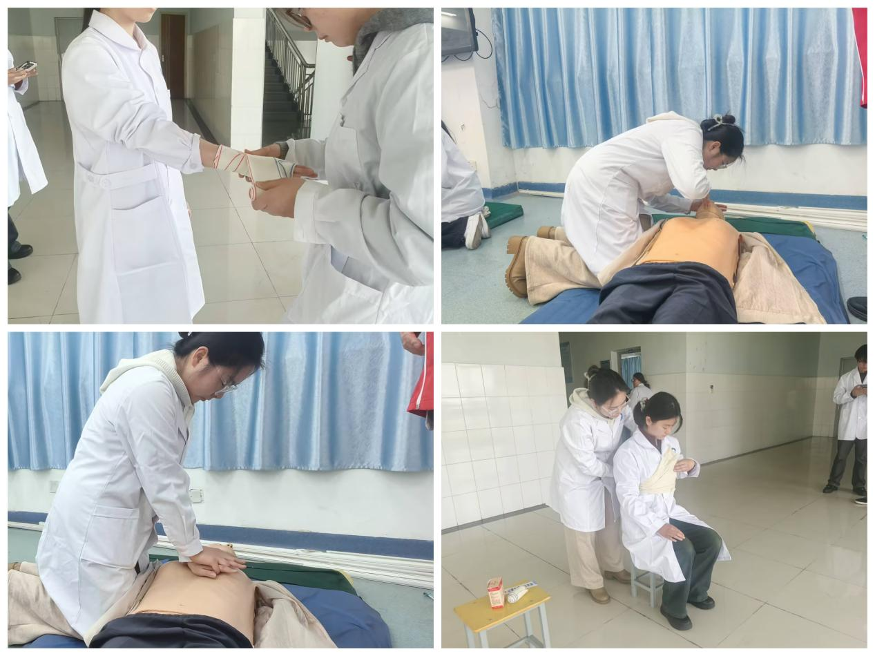 在为期四个晚自习的培训过程中,学生们系统学习了急救原则、心肺复苏(CPR)、止血包扎、骨折固定、烧伤处理等一系列急救基础知识。培训采用理论与实践相结合的方式,通过模拟真实场景,让学生们进行实际操作训练。经过反复练习,学生们基本掌握了CPR、AED使用、创伤处理等实操技能,为应对突发状况奠定了坚实基础。
