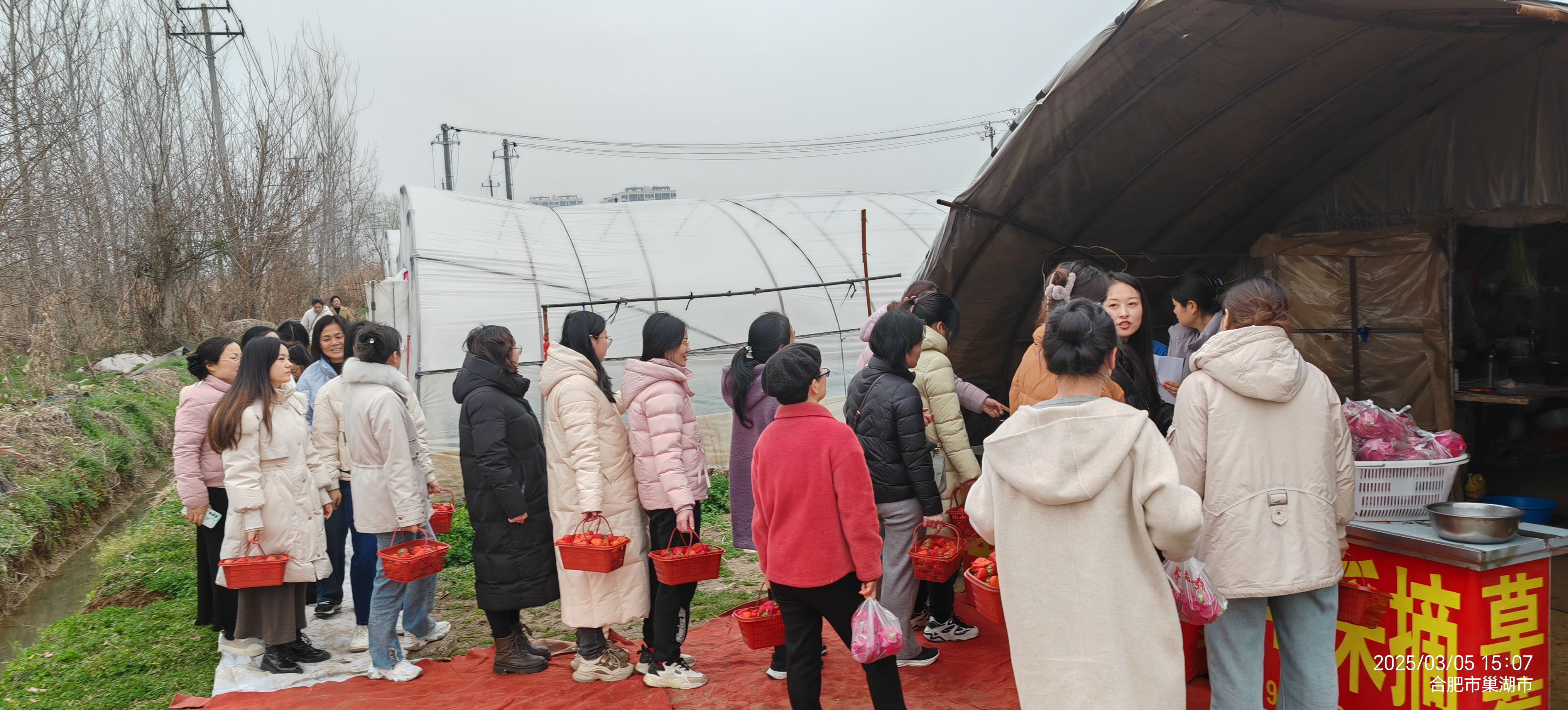 随后,大家前往生态采摘园,一颗颗鲜红欲滴的草莓藏匿于绿叶之间,犹如宝石般诱人。女教职工们穿梭在田垄间,亲手采摘草莓,品尝着甜蜜滋味的同时,也深深体会到丰收的喜悦。泥泞的小路并未阻挡大家的热情,反而为活动增添了几分野趣。“虽然鞋子沾满了泥,但心里装满了甜!”一位老师笑着说道。