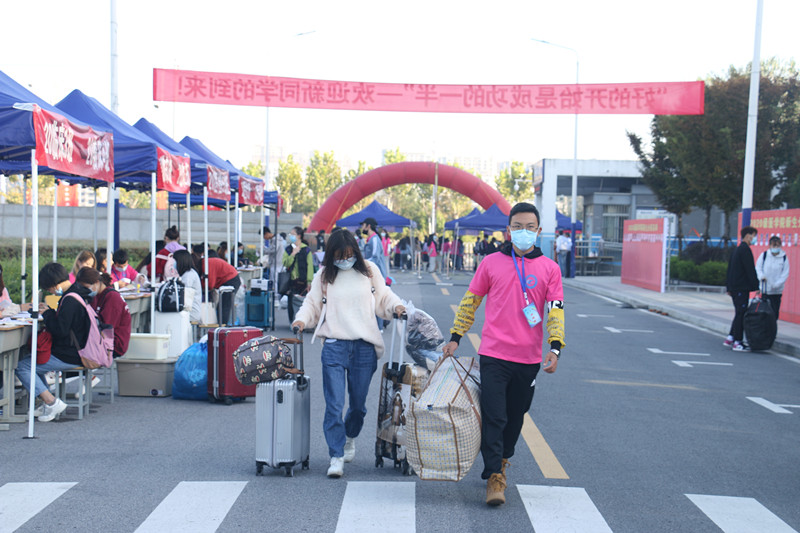 做好错峰分流,优化报到流程。根据《安徽省教育厅关于在常态化疫情防控下做好各级各类学校2020年秋季开学工作的通知》及学校要求,鉴于学生家长不进校园,为保证1000余名新生一天内报到完毕,永利集团304am登录教师队伍与学生志愿者们6:40准时到岗,在鼓山校区北侧东门迎新点等候新生报到。新生陆续抵达后,从大门4个通道有序完成安康码核验、录取通知书核对、测温、消毒、入校、报到、入住宿舍。整个过程在志愿者帮助下有序进行,避免来回穿梭。永利集团304am登录现场报到点、绿色通道等处都井然有序。