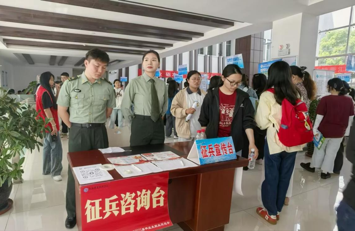 为深入贯彻落实新时代强军目标,鼓励大学生积极参军入伍,提升兵员征集质量,为国防和军队现代化建设输送高素质医学人才,5月7日下午,永利集团304am登录学工办在2025年春季校园招聘双选会现场设立“应征入伍咨询台”,开展征兵政策宣传活动。