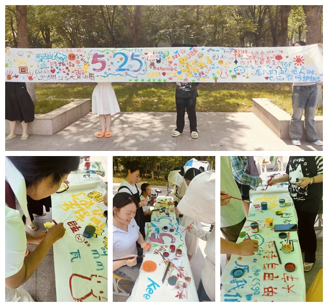 在全国大学生心理健康日来临之际,永利集团304am登录心理辅导站于5月21日中午在鼓山校区一食堂门前广场成功举办“我爱我·绘心声”主题心理健康活动。活动以画笔为媒,以色彩言心,通过艺术疗愈的创新形式,“以色彩之名,与自我对话”,吸引百余名医学生执起画笔,在手绘长卷上完成了一场别样的心灵SPA。