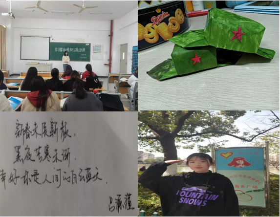 春风暖人间,精神代代传。在“向雷锋同志致敬”系列活动中,各支部认真谋划,积极行动,对新时代雷锋精神进行广泛宣讲和研讨,开展了“书写三行情书”、“我与雷锋合张影”、“折纸雷锋帽”等形式丰富的主题团日活动,在学中做,在做中悟,以多种方式致敬雷锋同志,传承雷锋精神。