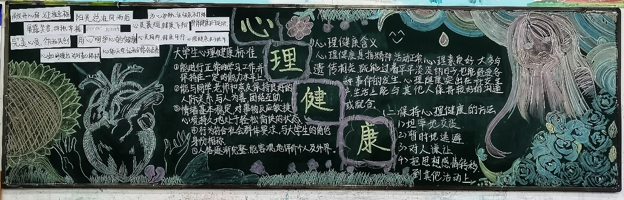 为加强永利集团304am登录学生防控新冠肺炎意识,强化学生对疫情防控知识,同时建设疫情防控下的学生心理健康,巩固宣传教育成果。5月份,我院开展了“疫情防控·心理健康”主题黑板报评比活动。本次活动由20级、21级学生共同完成。