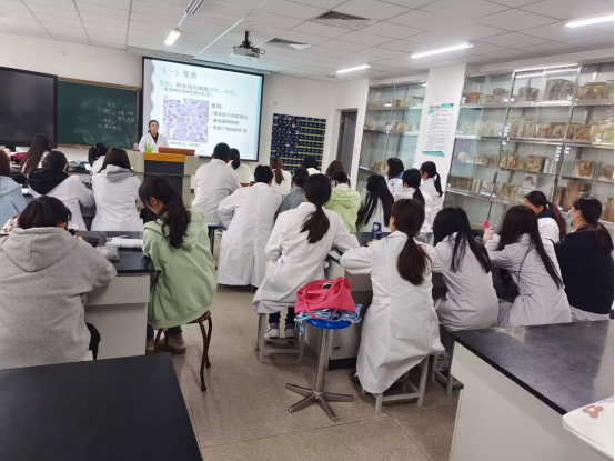 基础医学教研室的王慧老师在给22护理3班的学生讲授《病理学与病理生理学》。尽管《病理学与病理生理学》这门课理论性强,内容复杂难懂,但是王老师巧妙破解难题,将知识分解。同学们在学习知识的同时,也培养了分析问题的思考能力。