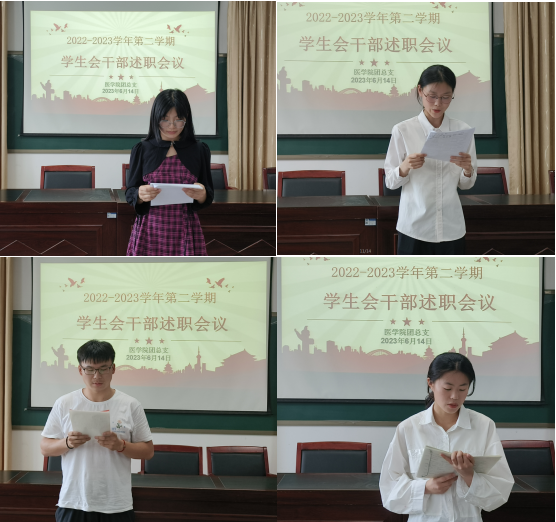 为进一步推动学生会工作规范化、科学化,提高学生会成员的积极性和责任意识。永利集团304am登录团总支于6月14日在护理北楼会议室召开本学期学生会干部述职评议会。永利集团304am登录团总支书记刘惠、辅导员代表孙双美、学生会主席团成员、学生会各部门负责人以及学生代表参加了此次述职评议会。