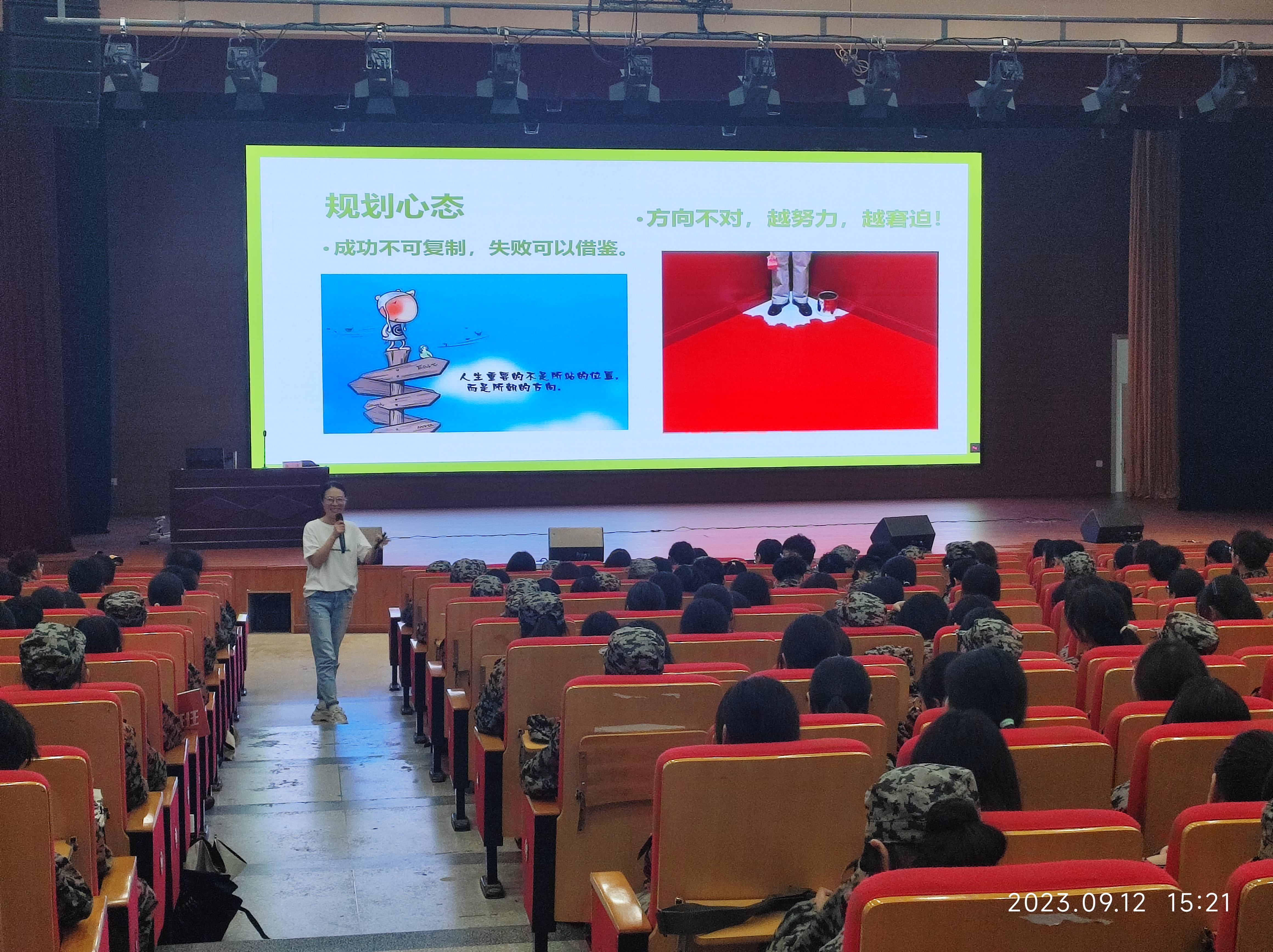 讲座从新同学们可能会遇到的一些问题和困惑切入,着重分析了大学新生如何完成“环境、学习、人际”三大适应,引导大学生积极树立“尊重心态、成人心态、归零心态、规划心态”四种心态,适应新生活,谋求新发展,积极完成适应期的心理调适。