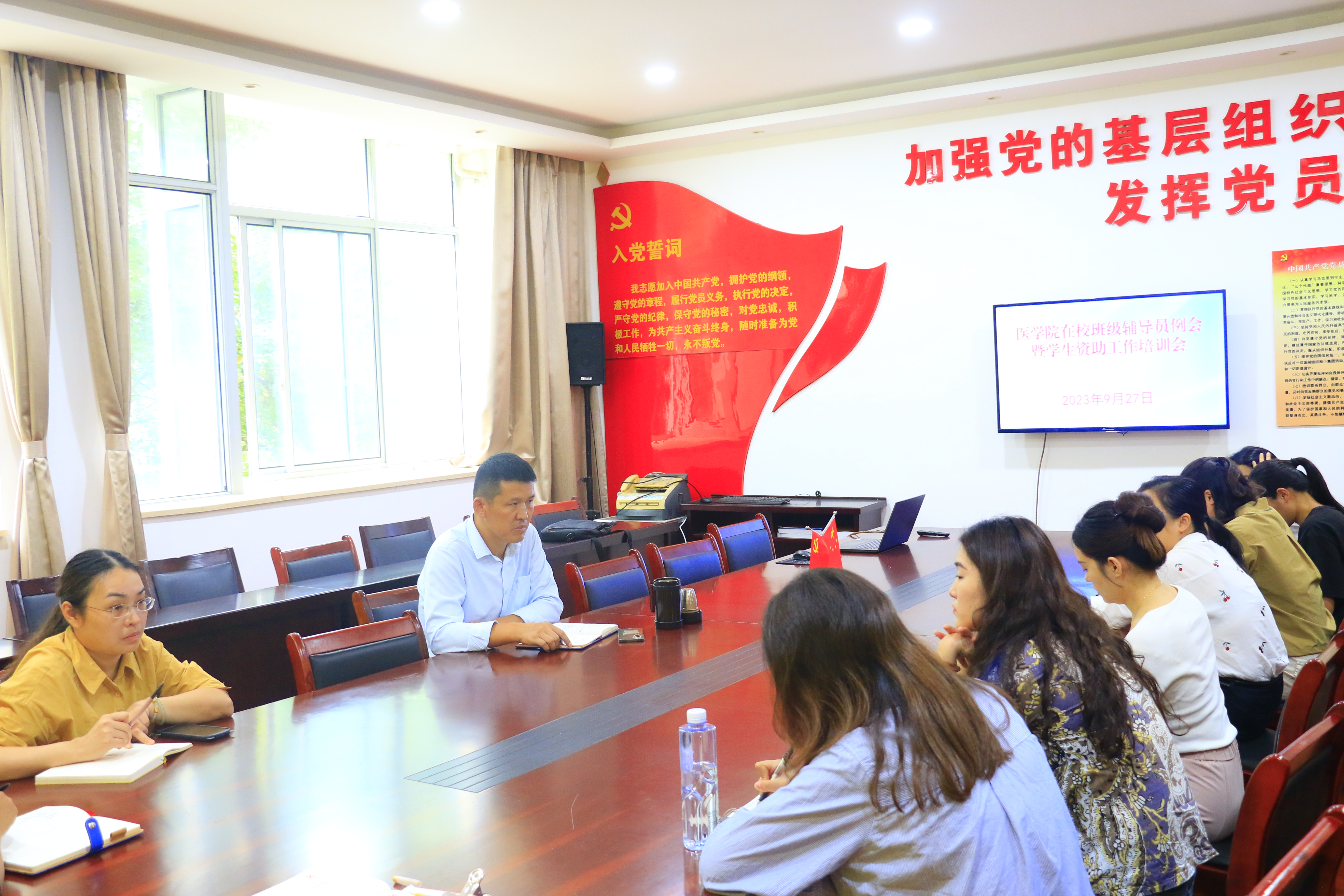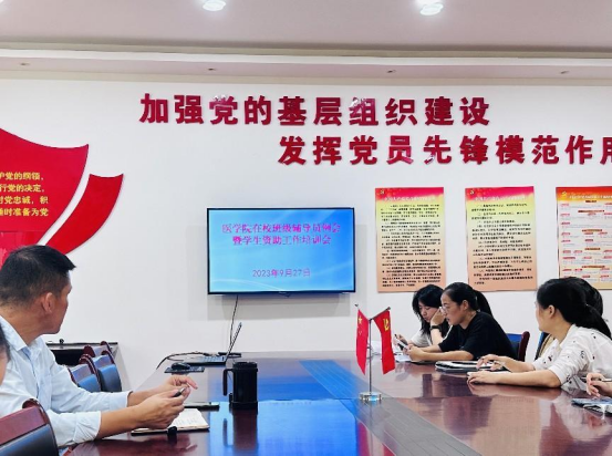 为进一步加强辅导员队伍建设,提升专兼职辅导员工作能力,做好近期学生工作,9月27号下午,永利集团304am登录在医学楼党员活动室召开全体在校班级辅导员例会暨学生资助工作培训会。会议由学工办主任孙亚萍主持,党总支副书记(主持工作)邹华兵、全体专职辅导员和在校班级辅导员参加了此次会议。