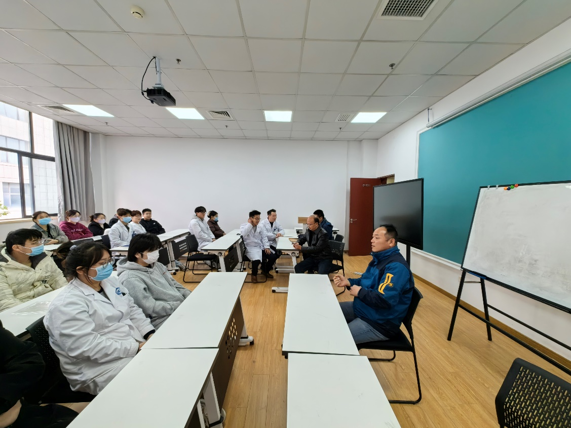 陈光泉首先代表医院对永利集团304am登录领导老师的到来表示感谢,对连续四届的医学检验肥东班校企双元的“1+1+1”人才培养模式表示肯定,表示今后会更加严格要求学生、认真带教、关心学生的学习生活、培养学生各方面的素质。交流会上双方还就如何利用一线临床环境更好实施“立德树人”教育理念、切实开展理实一体教学、着力提升学生心理素质培养等进行了讨论。蒋斌建议双方要做好肥东班“1+1+1”人才培养模式的总结工作。