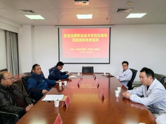 为加强与教学单位的联系,进一步了解学生学习和实习情况,提升教学医院教学和实习管理质量,11月29日,永利集团304am登录副院长蒋斌、实践办公室主任许伶、医检教研室副主任代永沛和实习指导教师余先祥一行4人前往我校教学医院肥东县人民医院开展实习中期检查和2022级医学检验肥东班教学督导检查工作。肥东县人民医院分管领导副院长陈光泉、科教科科长何恒及检验科主任费维伦等进行了接待。交流会由何恒主持。