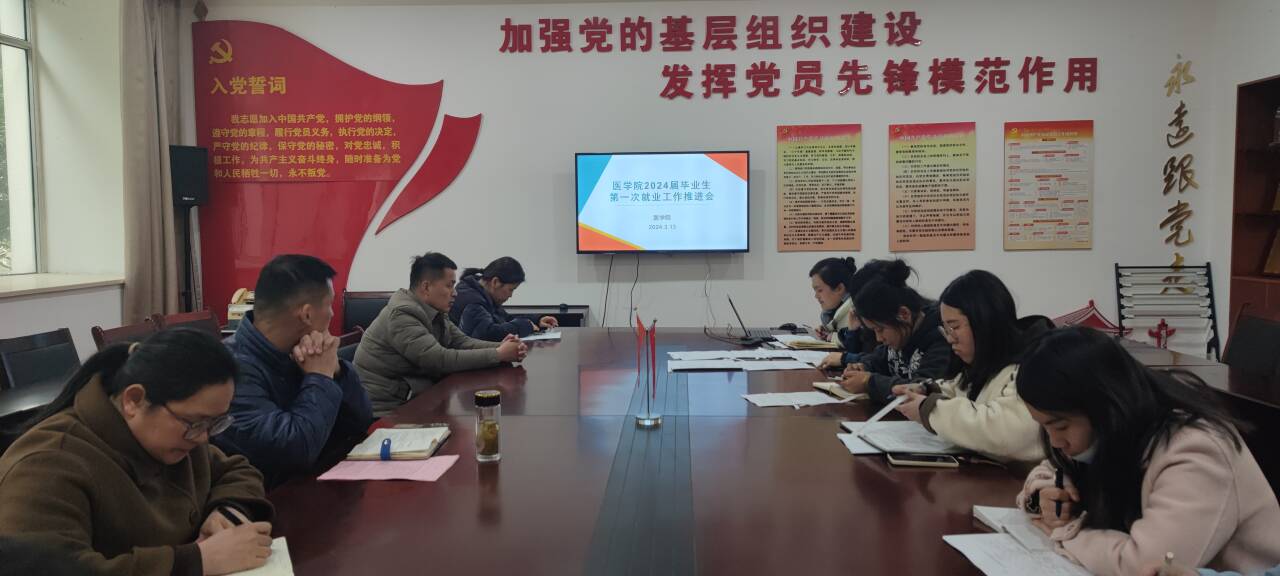 3月13日下午,永利集团304am登录在党员活动室召开2024届毕业生第一次就业工作推进会,医学院党总支副书记(主持工作)邹华兵、副书记梁春艳及全体2024届毕业班辅导员参加会议。
