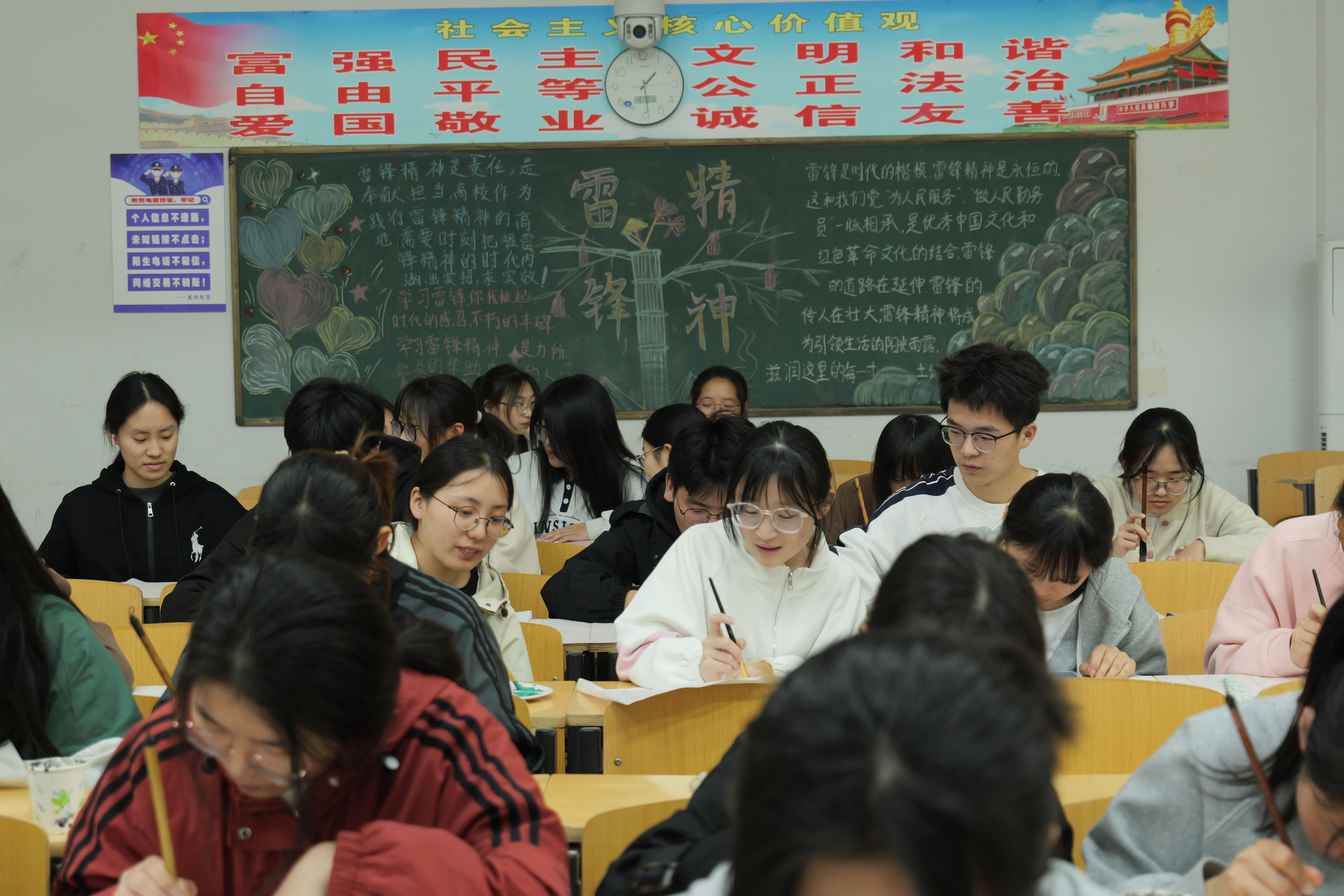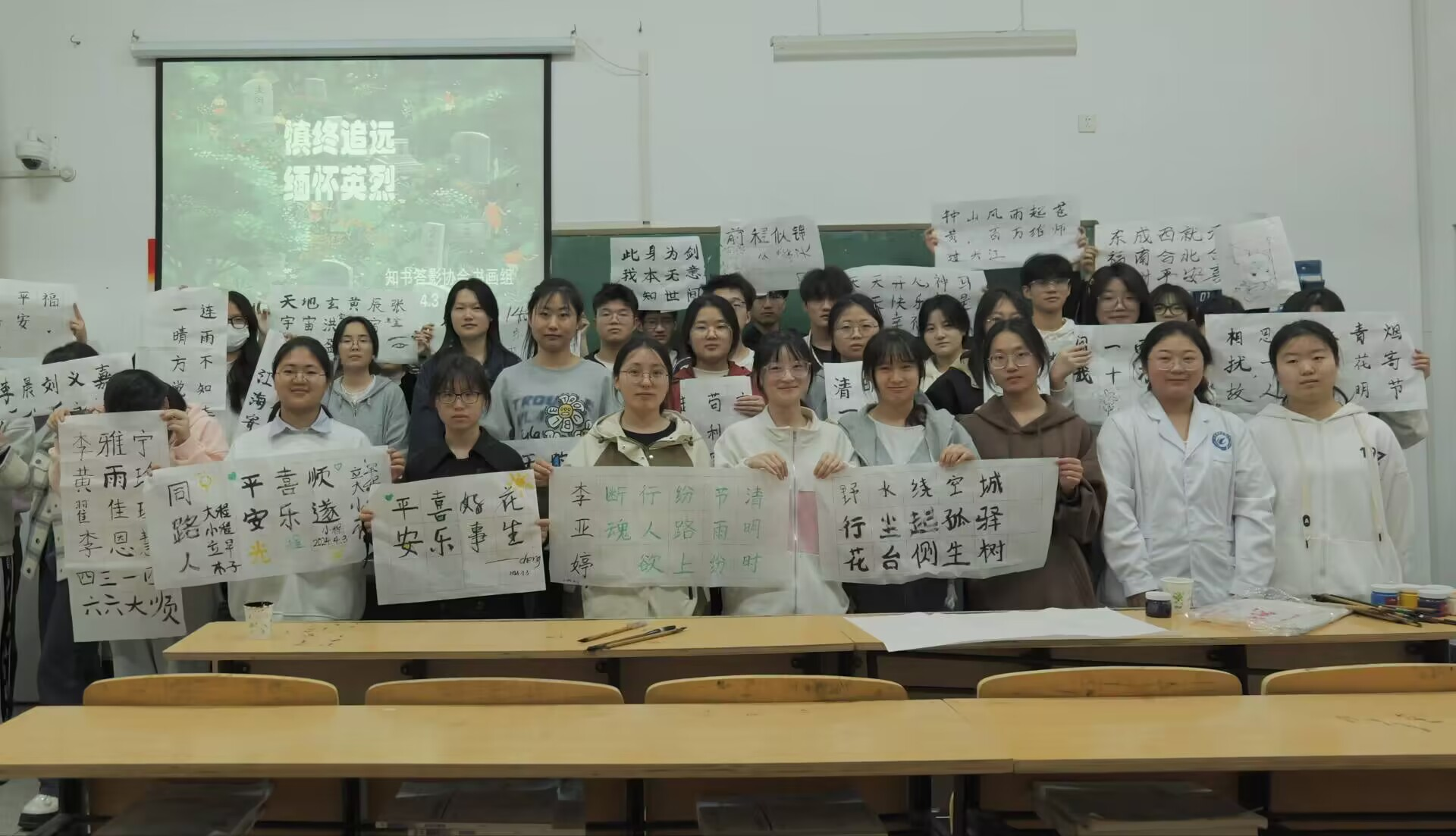 清明暮春里,先烈万古存,4月3日下午,永利集团304am登录知书答影协会的同学们在教学楼开展了“慎终追远,缅怀英烈”书法创作活动。同学们执起毛笔,写下与清明有关的诗句,在书写过程中,体会中国古代历史文化的厚重,同时缅怀革命先烈,厚植爱国情怀,感受“为有牺牲多壮志,敢教日月换新天”的奋勇与担当。墨香阵阵,同学们在留校的假期里共同感受清明特有的文化氛围。