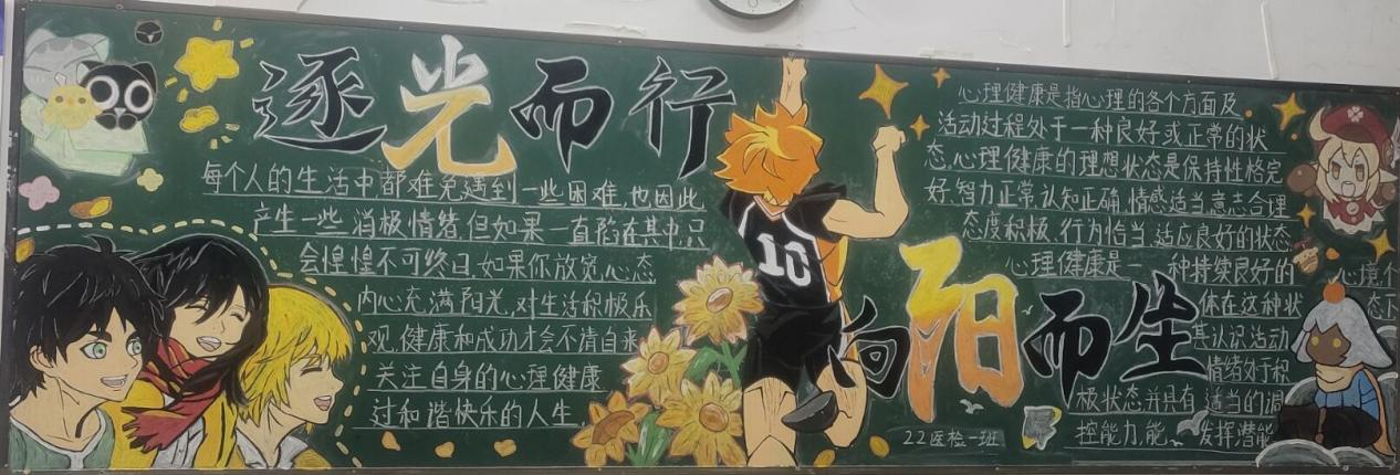 “心若向阳花自开”,结合5.25大学生心理健康日系列活动安排,永利集团304am登录心理辅导站举办了“向阳而生·逐光而行”主题黑板报评比活动。