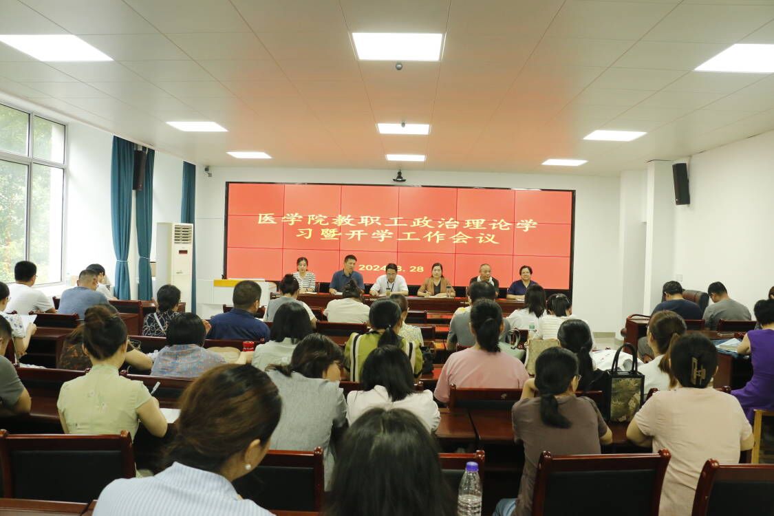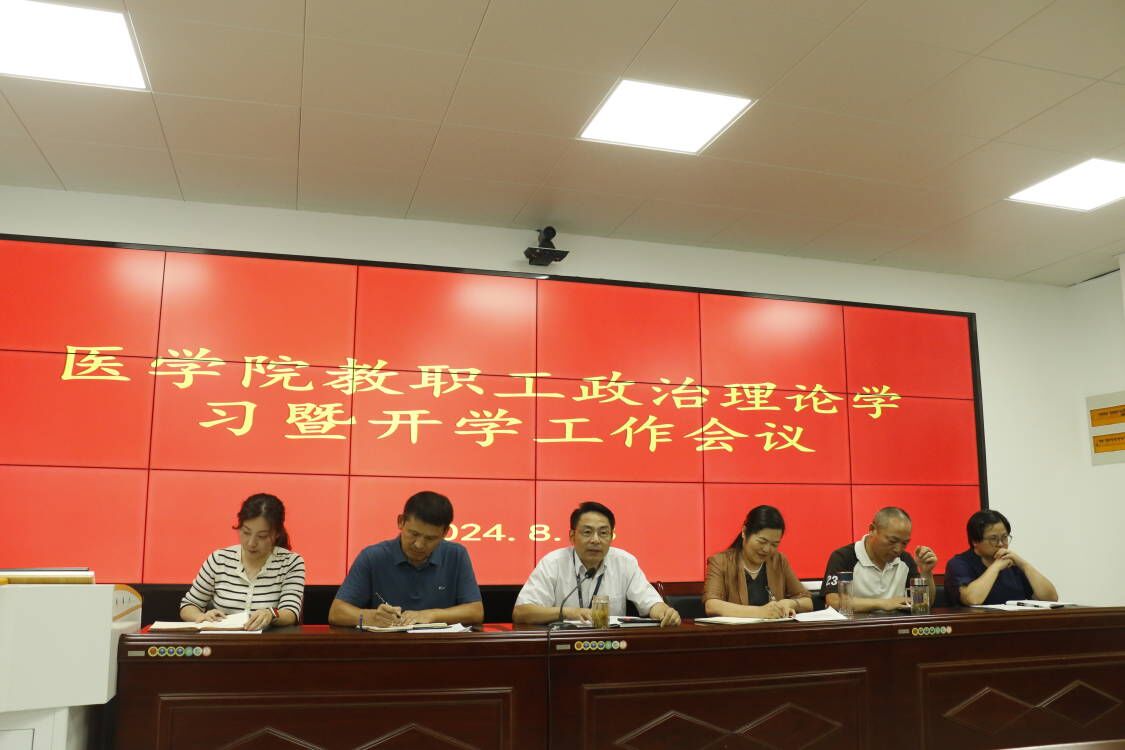 新学期,新开始,新希望。为深入学习贯彻落实党的二十届三中全会精神,引领全院教职工更快更好融入新学期各项教育教学工作,8月28日下午,永利集团304am登录在医学楼大会议室召开八月份教职工政治理论学习暨新学期开学工作会议,校党委书记王杰才出席会议并讲话,永利集团304am登录全体教职工参加,会议由永利集团304am登录党总支副书记(主持工作)邹华兵主持。