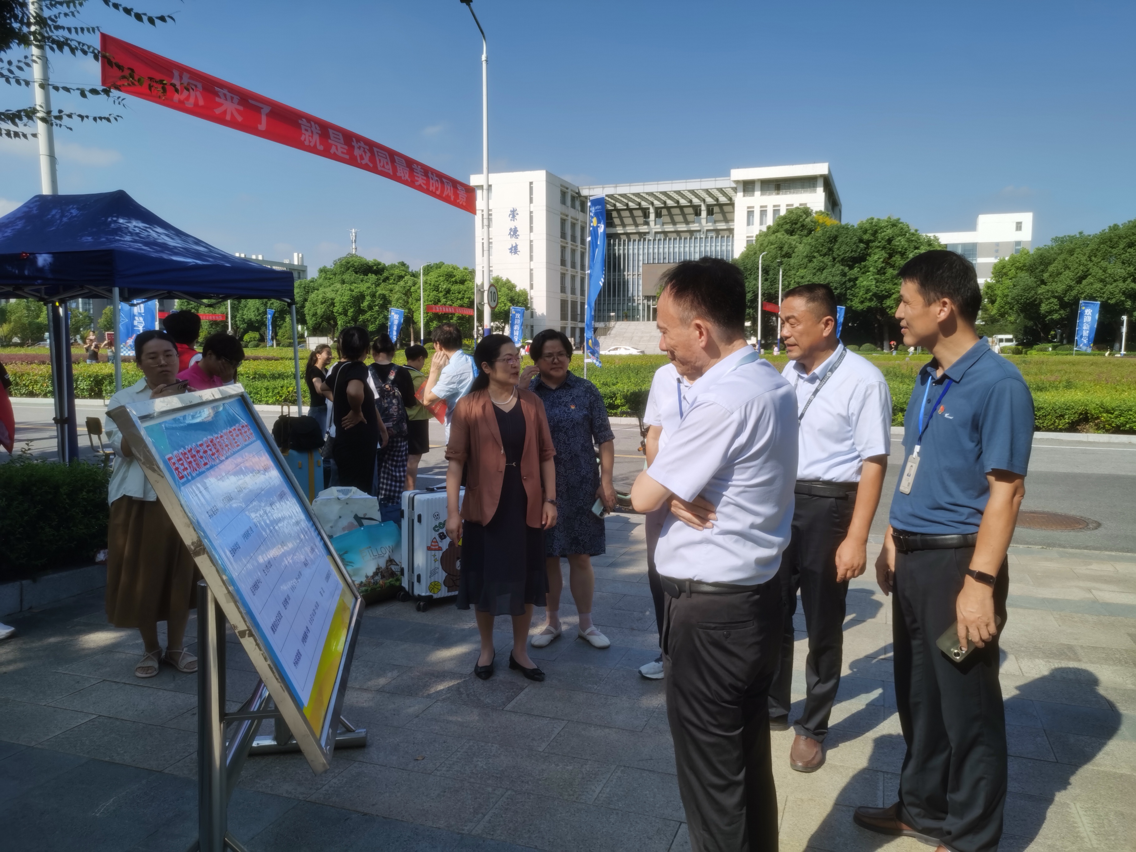 精心筹备,用心迎“新”。为确保迎新工作顺利开展,永利集团304am登录高度重视、提前谋划、全面部署,制定详尽工作方案,保障新生报到工作顺畅进行,整个迎新过程井然有序。报到首日,校领导和各职能部门负责人在永利集团304am登录领导班子成员陪同下,来到新生报到现场,了解询问迎新工作的开展情况,问候关怀坚守一线的工作人员和学生志愿者,与前来报到的新生及家长亲切交流,及时了解学生需求。