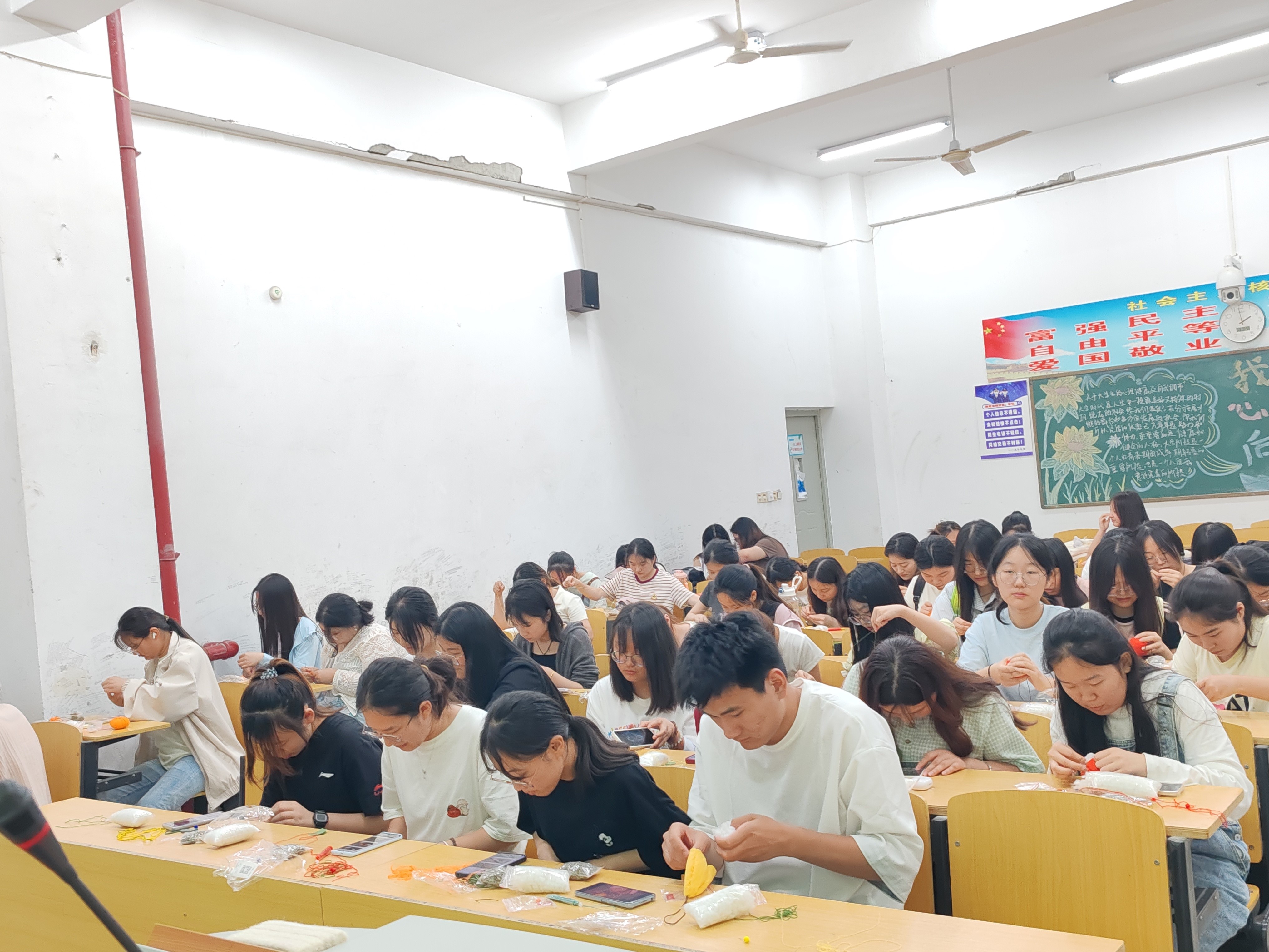 彩线轻缠红玉臂,小符斜挂绿云鬓。学而社的同学们在D栋教学楼热烈开展“五彩祈福,纳吉端午”手工活动。社团内外五十多名同学现场制作代表着祈福纳吉的五彩绳,感受端午结绳互赠的风俗与文化。