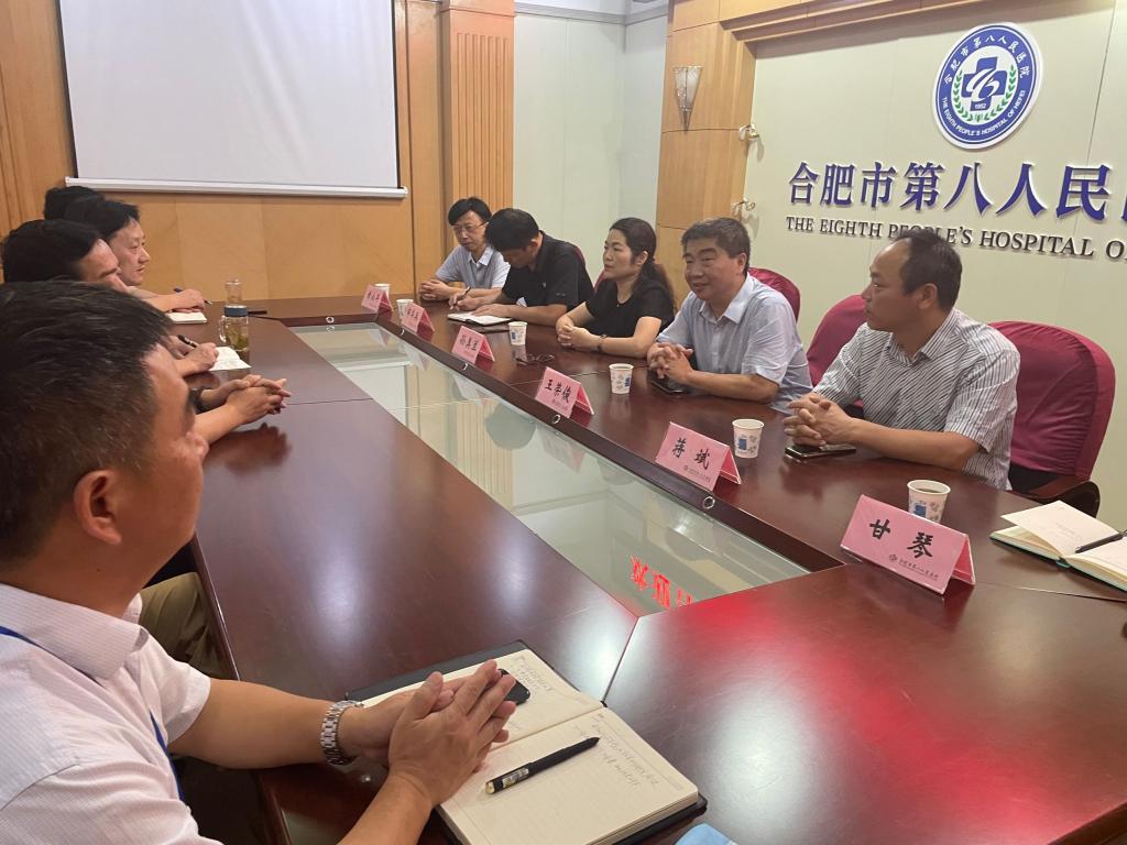 7月20日,我校永利集团304am登录院长王荣俊、副院长蒋斌、副书记孙美兰、副书记邹华兵、临床永利集团304am登录教研室主任黄永平、综合管理办公室主任甘琴一行前往合肥市第八人民医院进行学习交流。合肥市第八人民医院党委书记蔡晓明、副书记副院长朱兴国、副院长杜勇、副院长倪秀武、纪委书记王正青及各职能部门领导参加了会议。