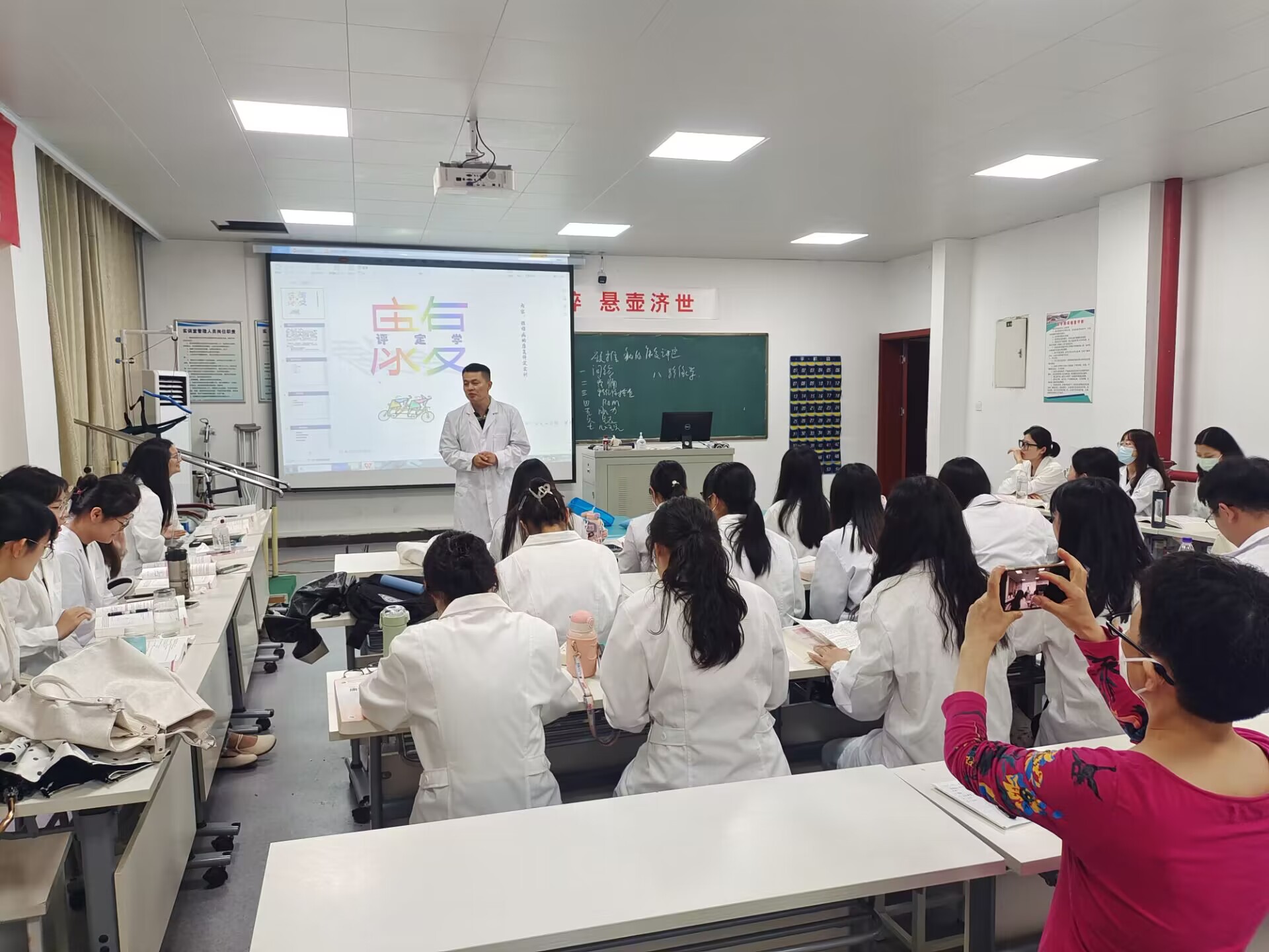 开展公开教学活动。在康复治疗技术课程实训中,李卫民副教授认真讲授康复治疗知识,带领同学们学习康复推拿手法,提高实操能力,促进学生康复技能的提升。在苏琰副教授的课堂中,介绍了常见病毒的类型和特点,在学习的同时普及疫情防控知识。