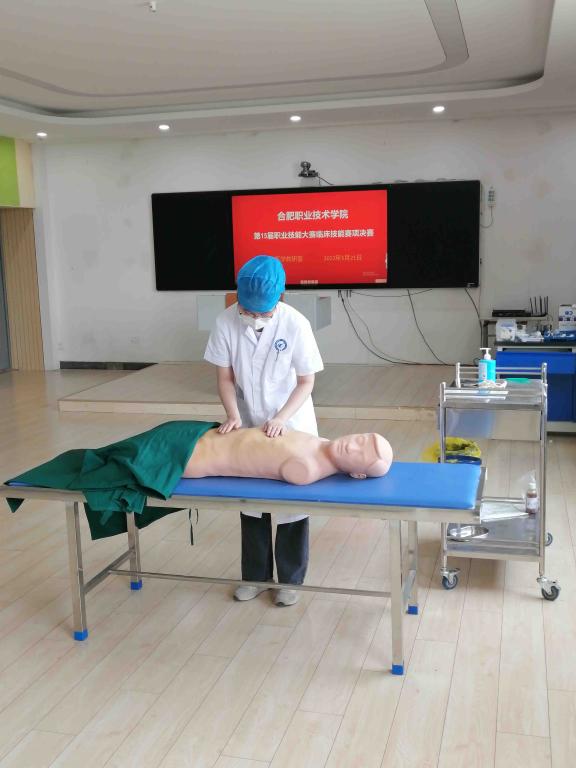决赛分为两部分。首先需要独立完成病例分析,占总成绩的20%;然后各选手随机抽取 2个技能模块(模块一:腹部触诊技术、胸膜腔穿刺术,共15分钟;模块二:心肺复苏技术、消毒铺巾,共10分钟)中的一个完成相关技能操作,占总成绩的 80%。考核模拟临床情景进行,重点考查参赛选手知识应用能力、临床思维能力、技能操作能力、沟通交流能力、分析问题、解决问题能力以及团队协作精神和人文素养。