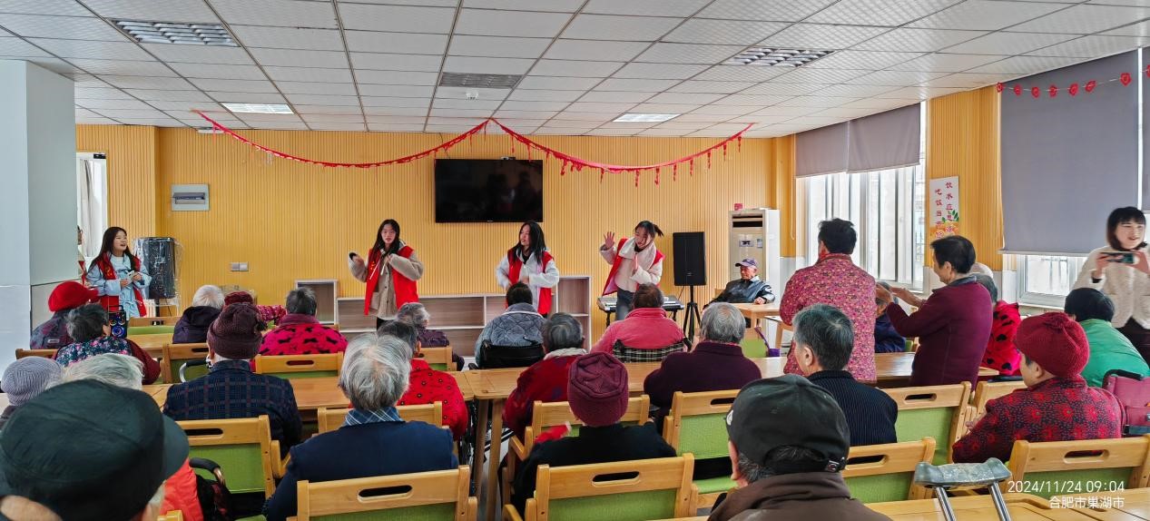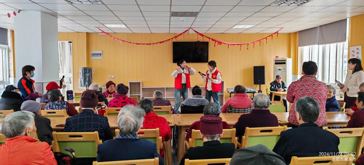 11月24日,永利集团304am登录第六、第八党支部的党员同志们带着各支部的积极分子和学生志愿者分别来到巢湖卧牛山老吾老养老服务中心和巢湖市山水华庭长者之家,开展十一月份主题党日活动,师生党员和志愿者们与养老院的老人们共同度过了一个充满欢声笑语的“党员活动日”。