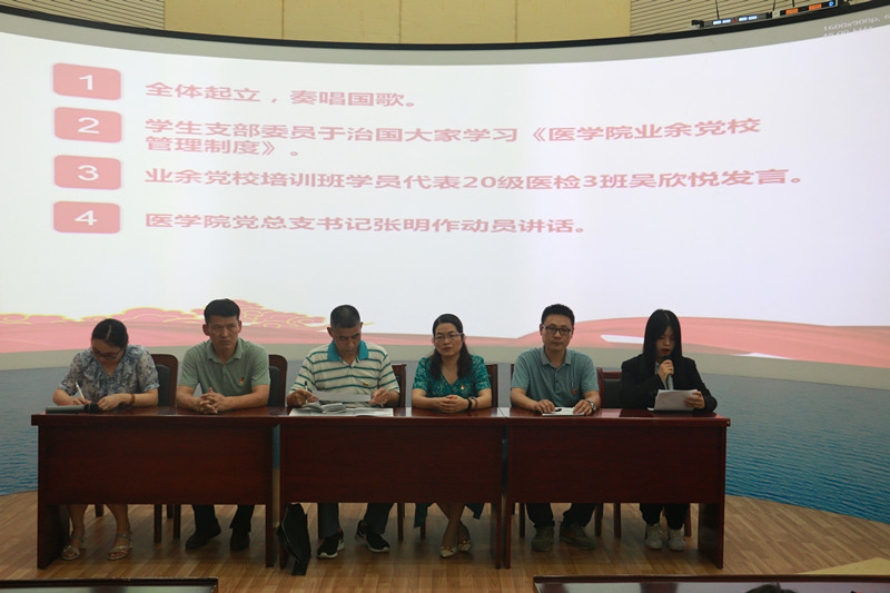 开班典礼在庄严的国歌声中拉开序幕,永利集团304am登录学生支部委员于治国宣读了《永利集团304am登录业余党校管理制度》,希望学员们能严格考勤和课堂纪律,认真学习。随后,学员代表20级医检3班吴欣悦作了表态发言,她表示会端正入党动机、坚定理想信念,并以实际行动向党组织靠拢。