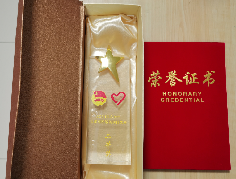 比赛过程中,王菲同学从容不迫的讲演以及流利的答辩赢得了现场观众的阵阵掌声,参赛作品《合肥地区居民急救知识现状调查及推广普及研究》以“敬畏生命,关爱健康,服务社会”为主题,从医学出发,题材新颖,创新性较强,得到了评委们的一致好评。经过激烈角逐,该项目最终以86.25的高分赢得了合肥市青年志愿者服务大赛二等奖。