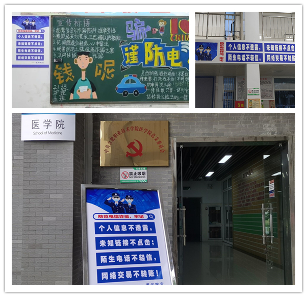 拓宽宣传渠道,提升宣传教育传播力。永利集团304am登录召开全体教职工会议、班主任会议,强化老师反诈责任意识,把安全教育和防范工作抓实、抓细;永利集团304am登录班主任开展防电诈主题班会,提高学生对电信诈骗的认识;对接“蓝马甲”公益宣讲志愿团,开展防诈骗安全教育讲座,介绍常见电信网络诈骗形式和手段,通过真实案例警示同学;加强宣传引导,通过在医学楼、护理楼、崇仁楼教学楼、宿舍楼张贴海报、布置展架,普及安全知识,营造防范电信诈骗的浓厚氛围。