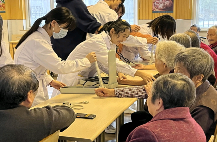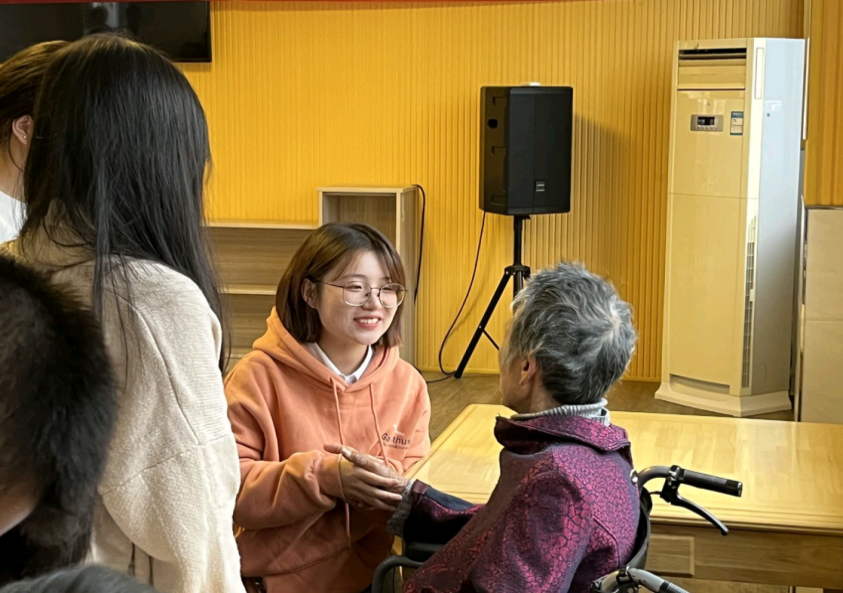 活动伊始,在管理员的安排下,敬老、助老活动正式展开,志愿者们分为若干个小组,各有分工。大家针对老人的日常生活、身体健康等情况提供进健康咨询和血压测量。老人拉着志愿者的手,和志愿者们一起聊生活中的事,讲述他们的人生经历。原本冷清的养老院变得热闹了起来,义诊活动让现场的老人们赞不绝口,为同学们的精心准备和认真付出给予肯定,还鼓励同学们继续钻研学业知识,以后提供给病人更专业周到的服务。