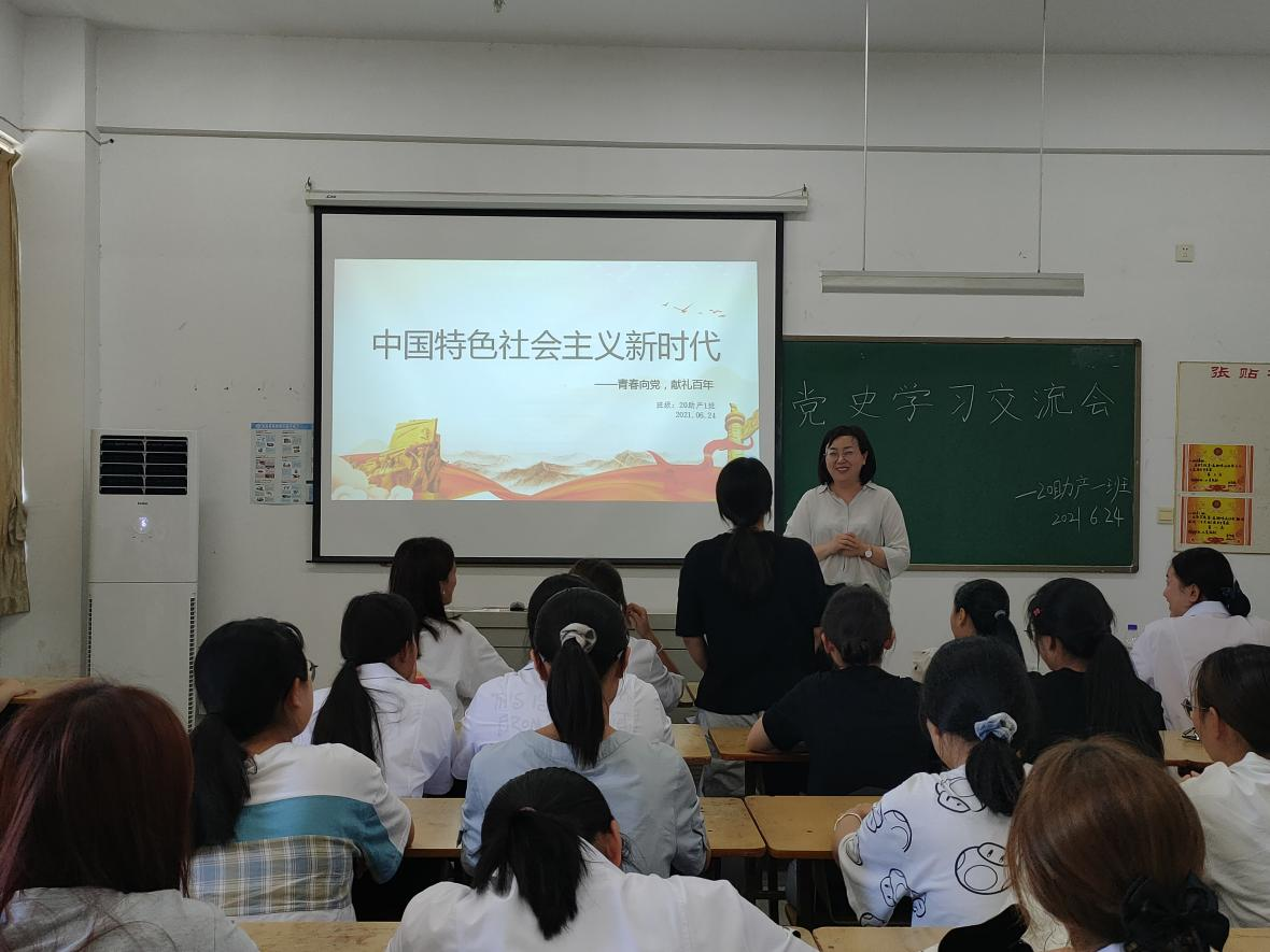 在庆祝中国共产党百年华诞的重大时刻,在“两个一百年”奋斗目标历史交汇的关键节点。为推动党史学习教育走深走实,加强永利集团304am登录青年思想政治教育,坚定理想信念,6月24日下午,永利集团304am登录举办的“中国特色社会主义新时代”党史学习交流会在D栋303教室举行。校团委负责人邹坤受邀主持本次交流会,永利集团304am登录20助产1班团支部全体同学参加了本次交流会。