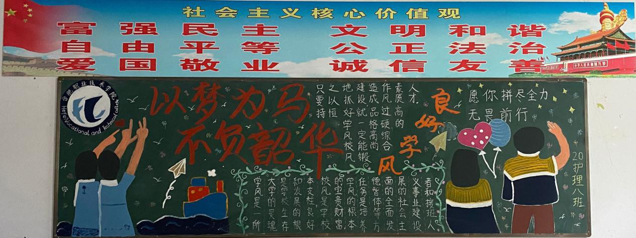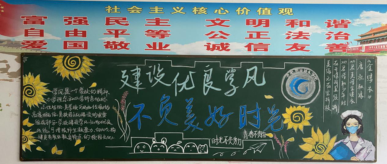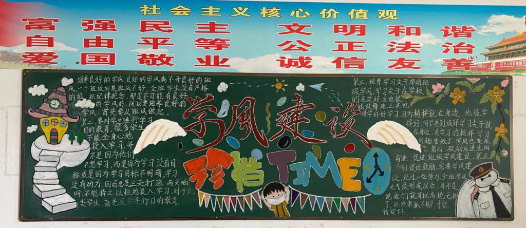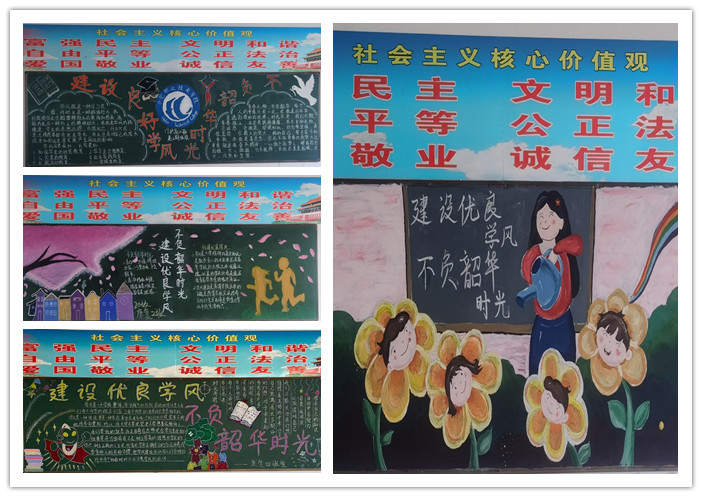 为展现我院学生奋发向上的精神风貌,进一步加强我院学风建设,充分发挥班级黑板报这一宣传阵地的舆论导向作用,营造良好的学习环境和校园文化氛围,我院于12月份开展了以学风建设为主题的黑板报评比活动。