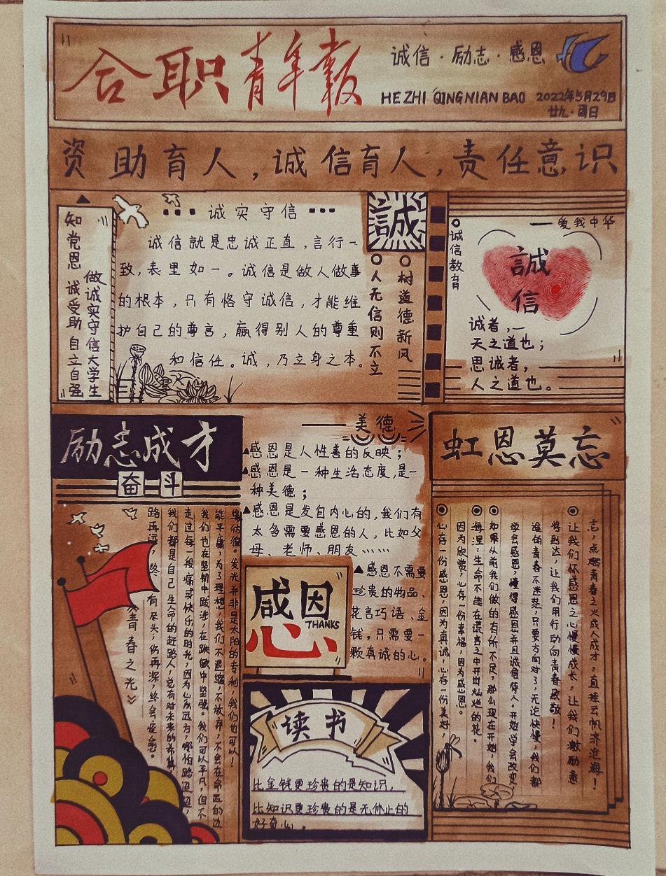 为加强永利集团304am登录学生诚信教育,深入推进资助育人,诚信育人,增强当代大学生的责任意识、自律意识、法治意识,永利集团304am登录开展了诚信·励志·感恩”主题手抄报评比活动。本次活动主要面向21级学生。