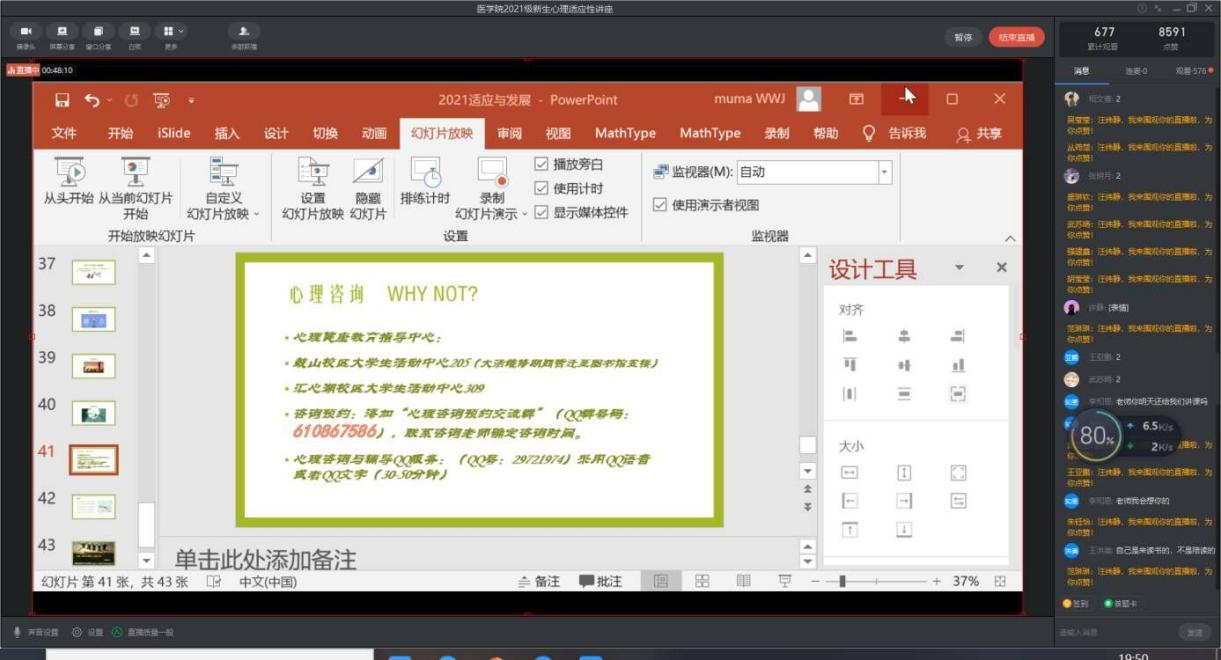 本次讲座采取网络直播的形式,打破了空间上的限制,加强了与学生之间的互动,给更多新同学表达想法提供了机会与便利。这种轻松愉快的讲座氛围,有助于大一新生们更好地理解讲座内容,接受心理健康知识普及,为提升新生的心理素质打下基础,也为将来他们以更加积极、从容的心态投入大学生活做了心理建设。