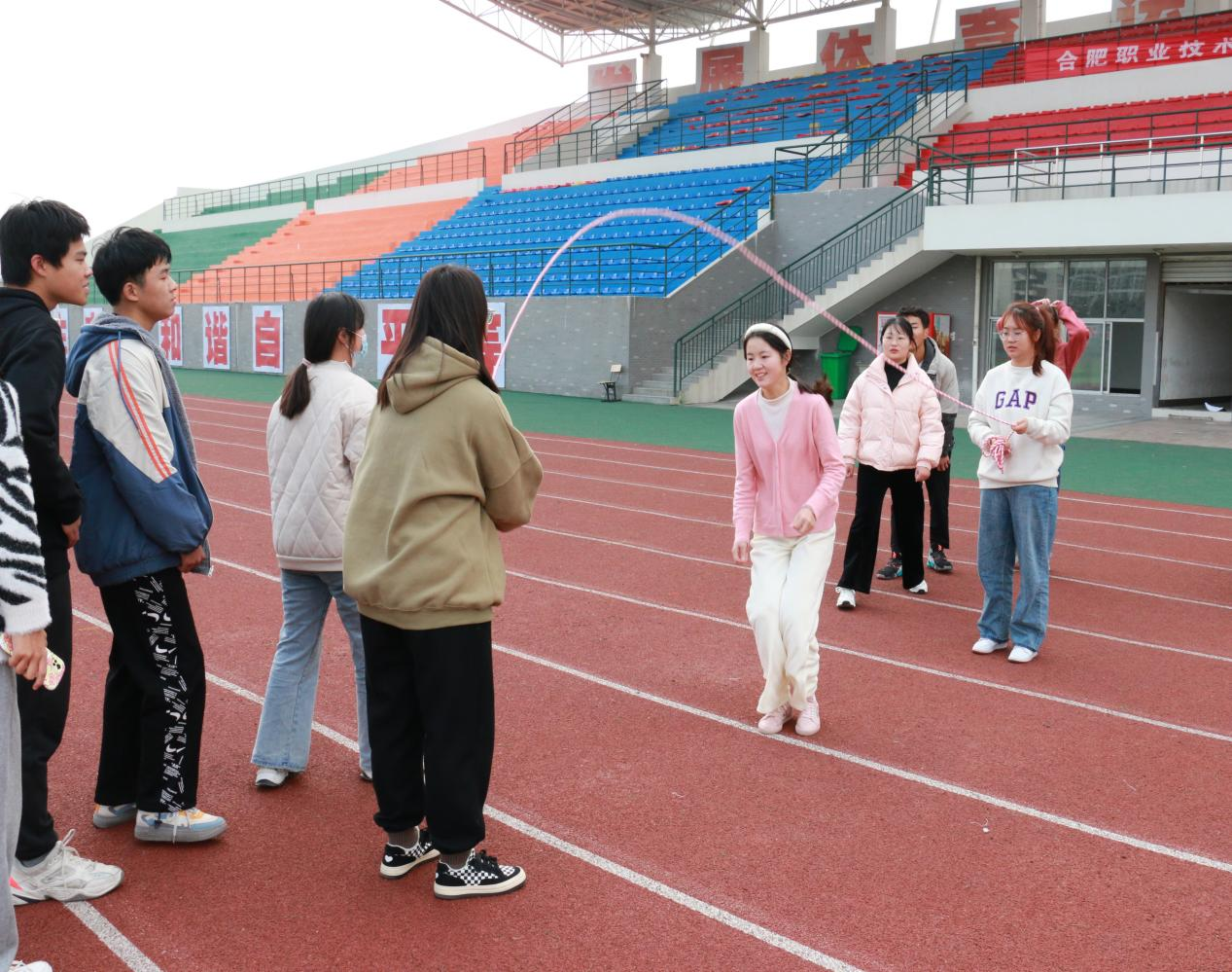 本次趣味运动会主要面向21级学生,共设“八字跳绳”“同舟共济”“摸石过河”“背气球接力赛”四个比赛项目。