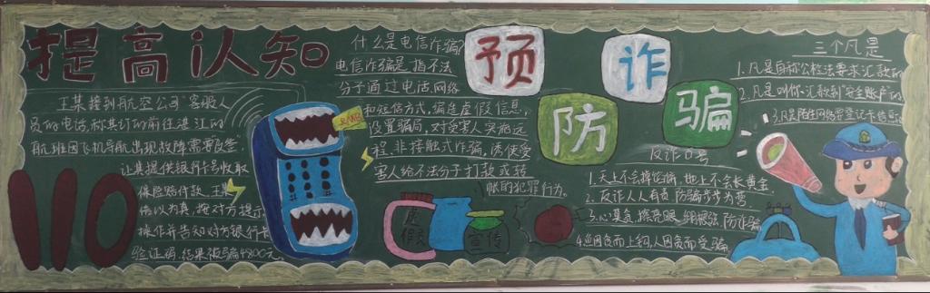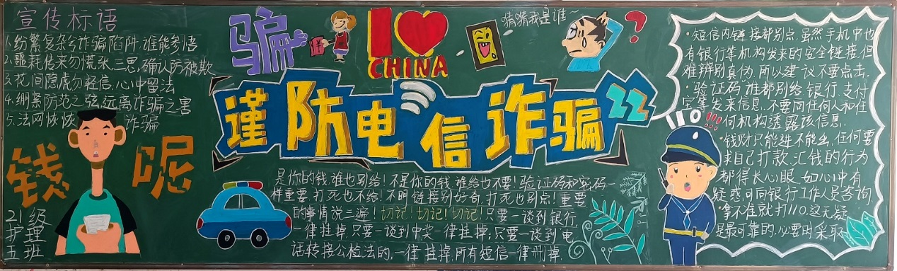 为切实提高永利集团304am登录学生防范和识别电信网络诈骗的意识和能力,保护学生财产安全,促进校园文明建设。10月15日,永利集团304am登录举行了以“预防电信网络诈骗”为主题黑板报评比活动,本次活动21级、20级和19级五年制班级学生在自己代管班级或分配班级进行黑板报创作。