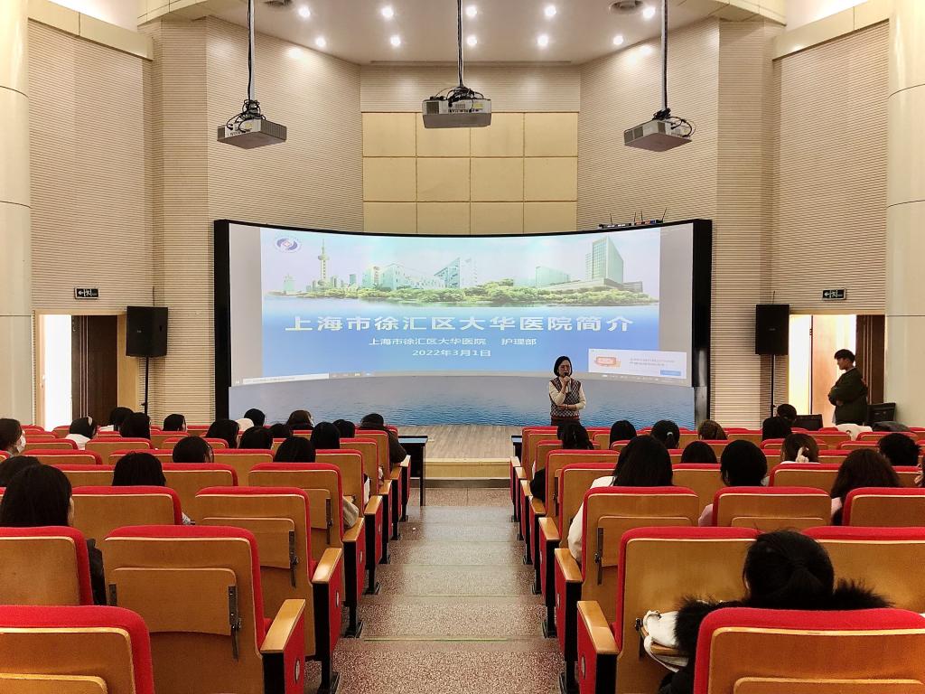 宣讲会上,上海市徐汇区大华医院护理部主任杨雅和实习总带教彭春敏向与会同学介绍了大华医院的基本情况,包括各科室的建设、实习岗位以及人才建设情况。杨雅教授对我校护理学子职业发展和实习就业问题进行指导,并针对学生们的提问进行认真解答。