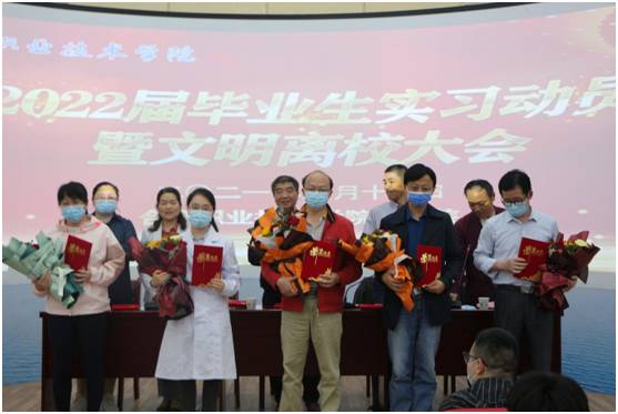 在优美的护士之歌声中,永利集团304am登录领导为10名优秀实习指导教师颁奖并合影留念,实习生代表为优秀指导教师代表们献上了精美的花束。